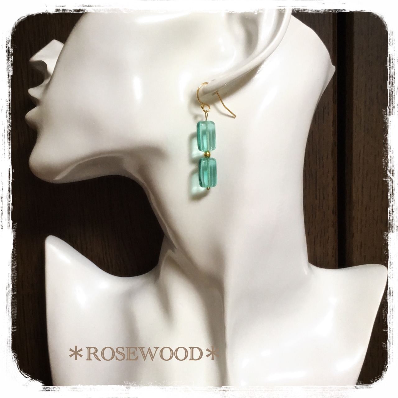 ミントカラーのチェコガラスがキレイなピアス/イヤリング。