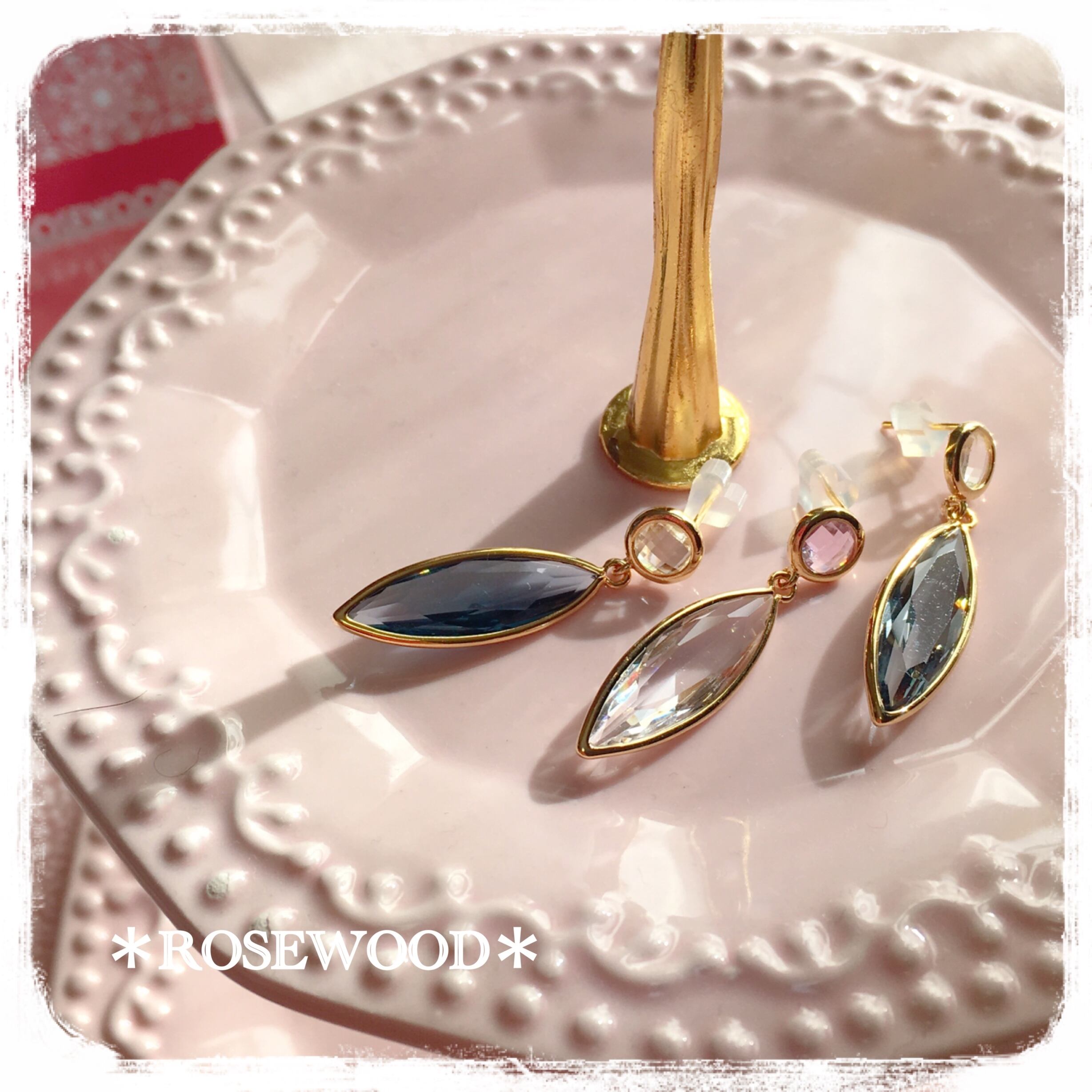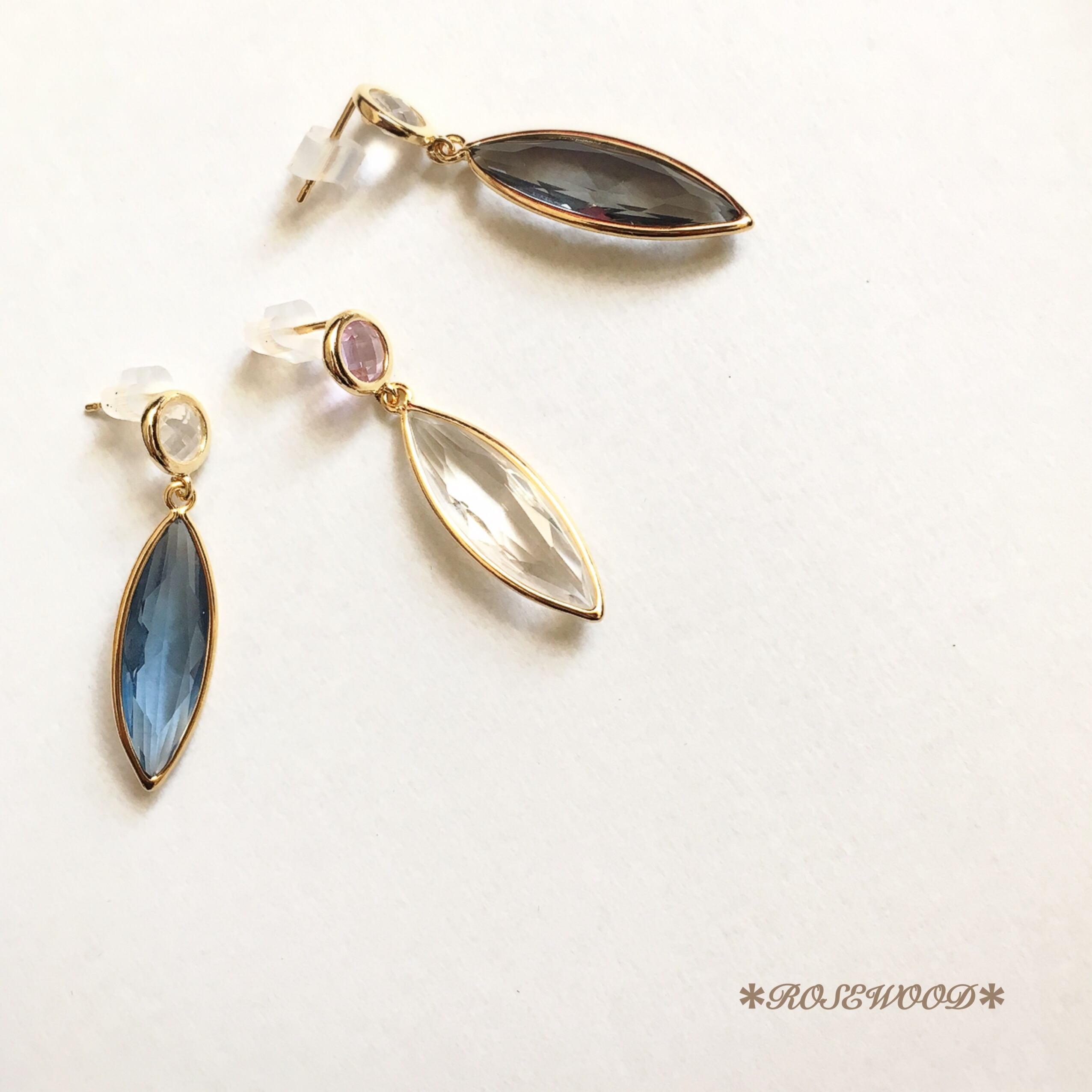 K16ゴールドプレートと美しいビジューガラスの品格のあるピアス。