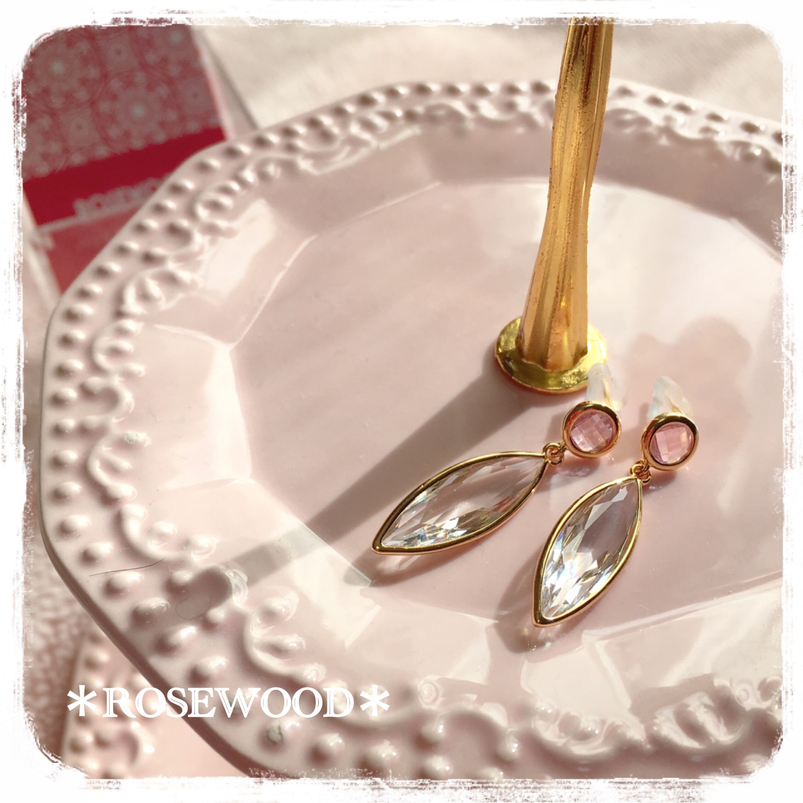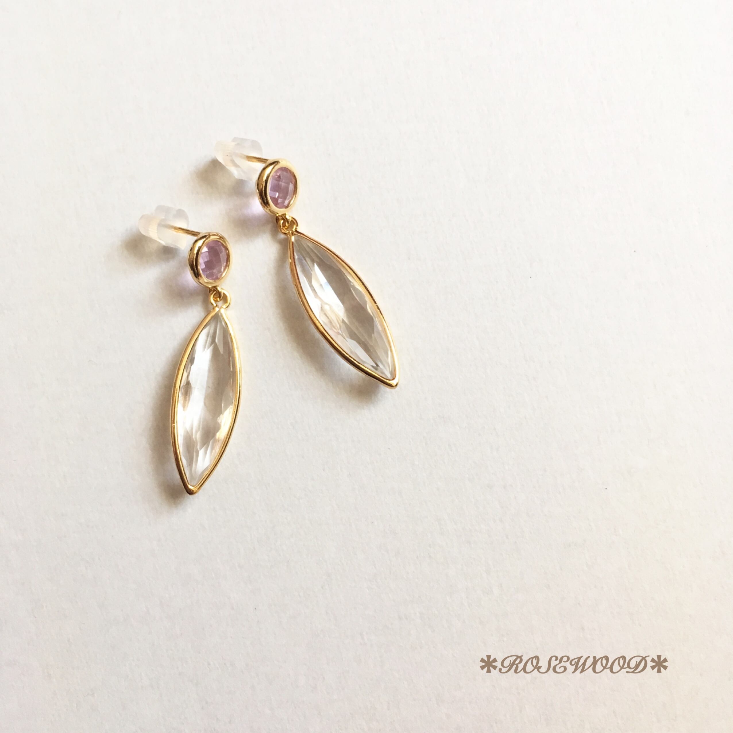 K16GP ビジューピアス *leaf drop pinky クリスタル