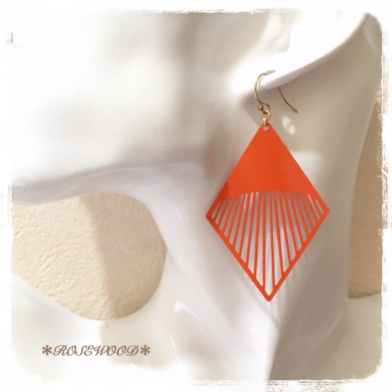 ヴィンテージオレンジが鮮やかなおおぶりピアス/イヤリング。