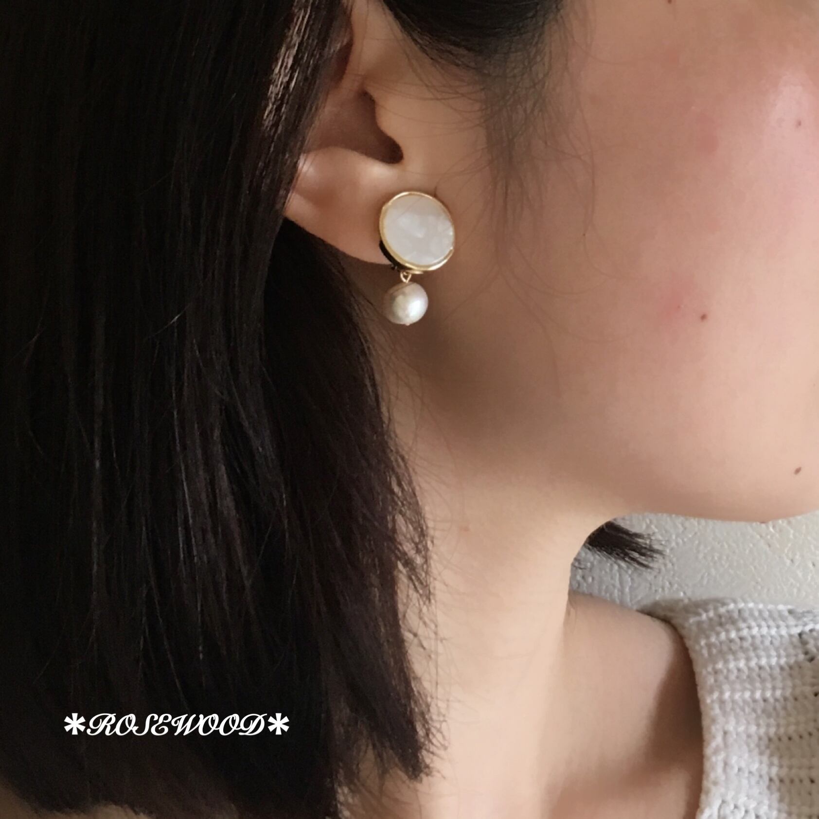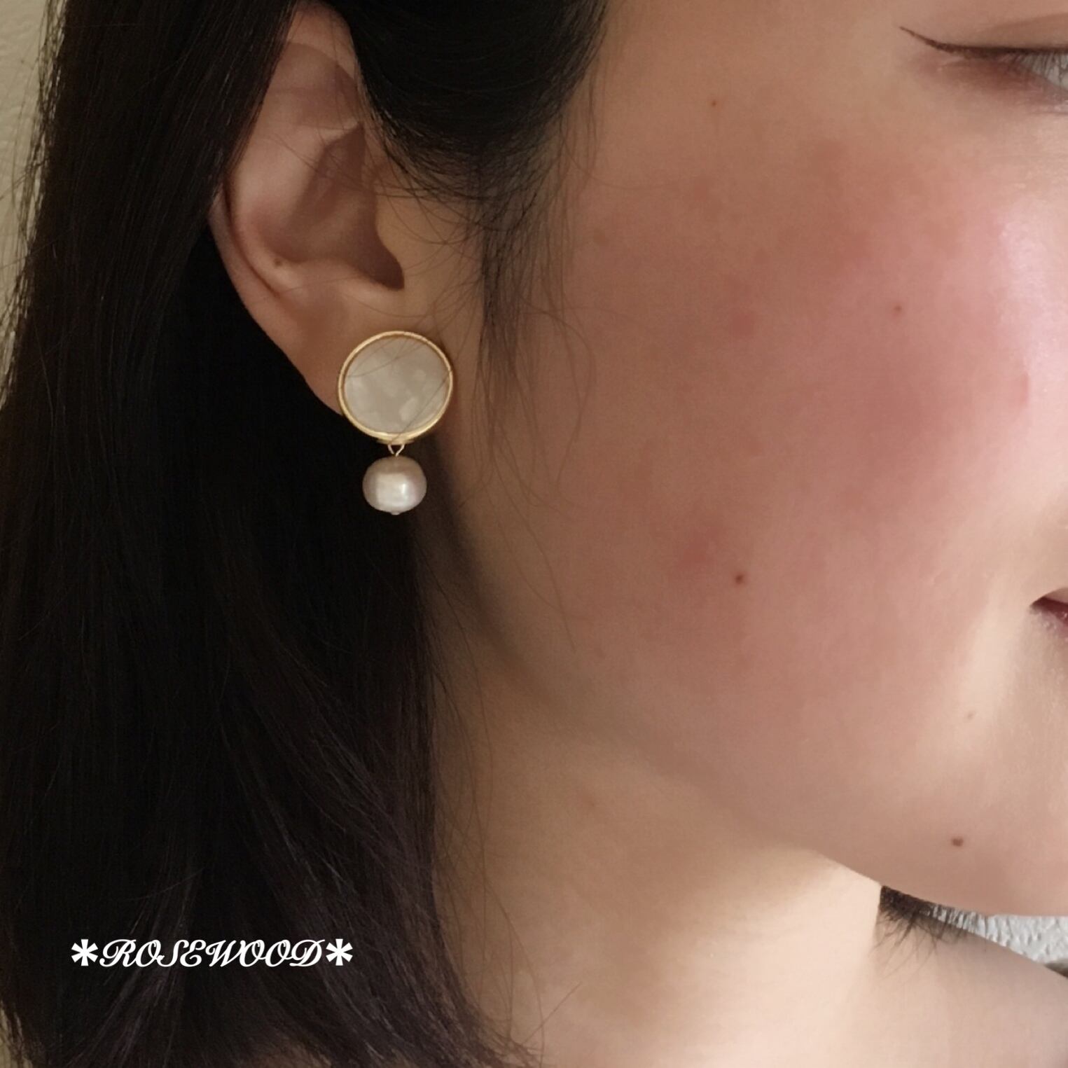 K16GP パールビジューイヤリング *pure pearl 淡水パール ホワイトカラー